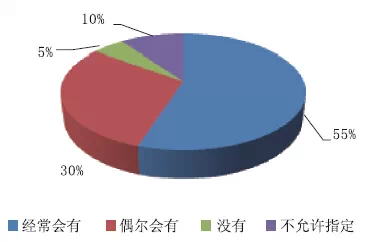 在參與者所接觸的項目中,針對是否經(jīng)常有指定廠家或品牌的問題,認為經(jīng)常會有的占比55%;偶爾會有的占比30%;沒有的占比5%;不允許指定的占比10%。如圖4所示。