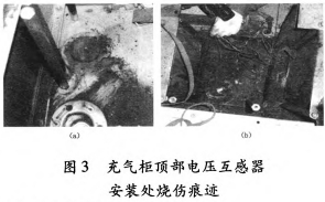 試驗人員對受損設備進行電氣試驗,柜體A、B、C三相對地絕緣電阻為零;A、B相電壓互感器一次繞組電阻為無窮大;C相電壓互感器一次繞組電阻為9800Q。闡明A、B兩相電壓互感器一次繞組徹底燒斷。根據設備沿面放電特色,沿面放電時不會構成干式電壓互感器開裂損壞。