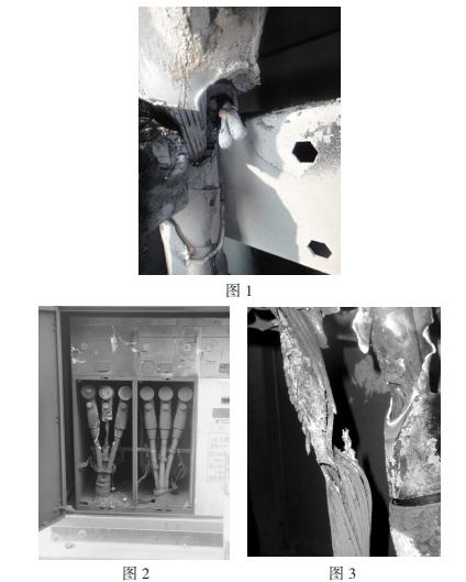 2008324日,回南天,富灣站富油乙線速斷跳閘,位于戶外的一臺電纜分支箱產生短路爆破(如圖1),601開關出線電纜倉門嚴峻熏黑,翻開后發現A相電纜終端應力錐焚毀,纜芯熔損,初步剖析主要為施工工藝粗糙,構成電纜終端電場畸變嚴峻,一起纜身緊靠固定用金屬支架,在箱內潮濕環境下產成長時刻閃絡放電,畢竟絕緣破損接地短路,將出線套管炸壞,構成氣室漏氣,分支箱報廢。