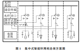 1集中式智能環(huán)網(wǎng)柜總體方案智能環(huán)網(wǎng)柜是利用現(xiàn)代的電力電子、自動化控制、傳感測量等技術(shù)將10kV負荷開關(guān)柜、斷路器柜、熔斷器柜、互感器與保護裝置、通信裝置、計量儀表等模塊組合在一起,實現(xiàn)電網(wǎng)一次設(shè)備與二次設(shè)備的良好結(jié)合。集中式智能環(huán)網(wǎng)柜整體框架如圖1所示。