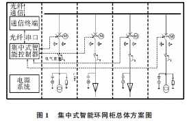 1集中式智能環網柜總體方案智能環網柜是運用現代的電力電子、主動化操控、傳感丈量等技術將10kV負荷開關柜、斷路器柜、熔斷器柜、互感器與維護設備、通訊設備、計量表面等模塊組合在一同,完畢電網一次設備與二次設備的超卓分離。集中式智能環網柜全體構造如圖1所示。