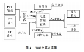 2.6智能電源環網柜的操作組織、操控器、通訊終端等二次設備都需求完畢不連續供電。為了行進供電的可靠性,請求在供電電源失電時,二次回路仍然會有電源,能夠持續可靠的動作,環網柜中有必要具有備用電源。為了行進供電電源的可靠性本電源的規劃首要選用了如下辦法:(1)環網柜普通選用雙進線,兩條進線互為備用給電源的充電模塊供電,當其中一條進線失電時,由繼電器將另一條進線的220V電源轉給充電模塊,保證整個柜子的二次回路持續供電。(2)當環網柜的兩條進線都失電的時分,為了使二次回路持續帶電,需求由備用電源持續供電。如今首要的備用電源是不連續電源(UPS)和蓄電池,還有的選用超級電容供電。為了行進供電的可靠性,本電源方案選用蓄電池與超極電容相分離,兩種電源可互為備用,能夠進一步行進供電的可靠性。智能電源的方案如圖2所示。